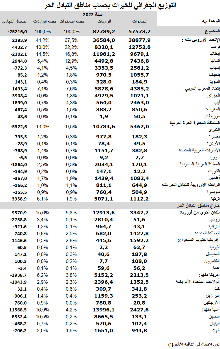 التوزيع الجغرافي للحاصل التجاري سنة 2023