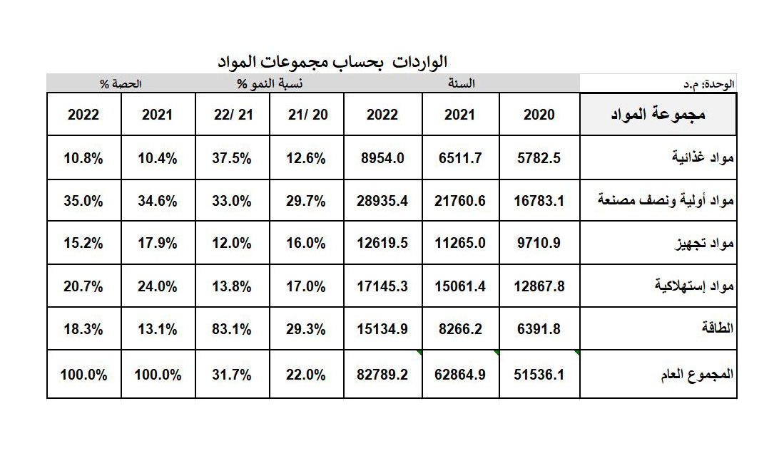 الواردات بحساب مجموعات المواد خلال الفترة 2020-2022