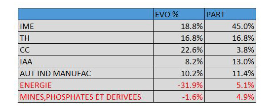 EVOLUTION DES EXPORTATIONS ET PART DES SECTEURS D’ACTIVITES T1 2023