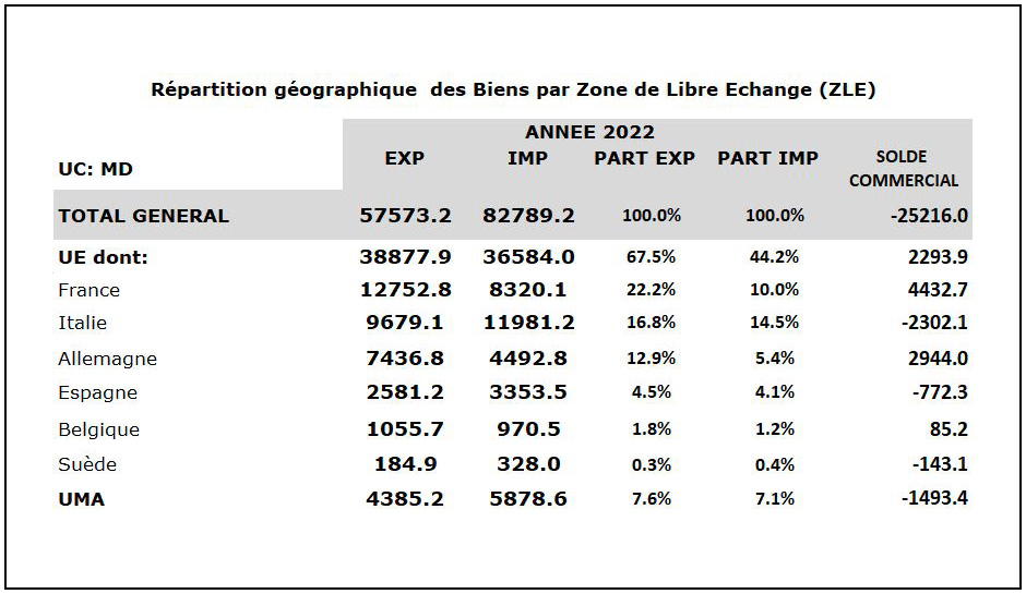Statistiques du commerce extérieur pour les années 2020, 2021 et 2022